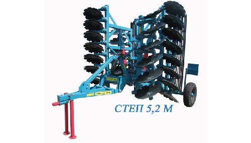 Агрегат почвообрабатывающий дисковый СТЕП М прицепной с шириной захвата от 5, 2м до 5, 87м — предназначен для обработки почв всех типов на глубину 5 - 18 см челночным способом, создают оптимальную природную структуру грунта для роста растений и прикатывают верхний слой почвы для сохранения почвенной влаги.